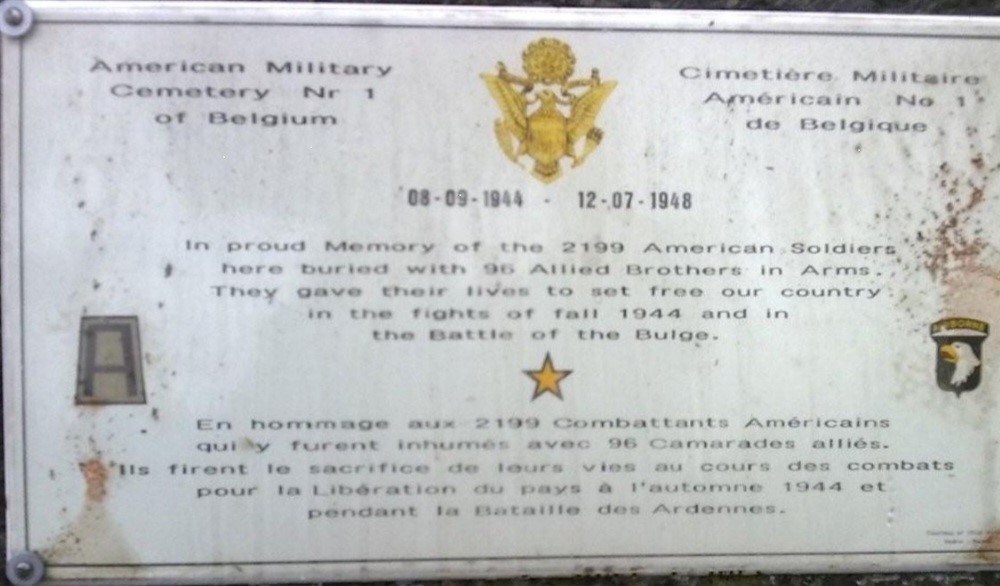 Burials continued there until February 1945, and the cemetery eventually held 2,199 United States soldiers and 96 men from other Allied nations’ armies. The remains of an additional 1,600 German soldiers were buried on a lower level separated by a large lawn. Most of those laid to rest at Fosses were casualties of the liberation of Belgium and Netherlands, the entry of the first American troops into Germany, the German counter-offensive in the Ardennes in December 1944, and victims of air crashes.