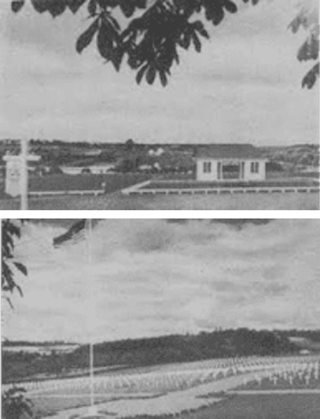 Cemetery grounds then consisted of a pavillion guarded by seven U.S. Army soldiers, shown in the above right photo (top) and surrounded by a forest of small crosses arranged in 11 square plots with 200 graves each, shown above right (bottom). Max located these photos and shared them with me.