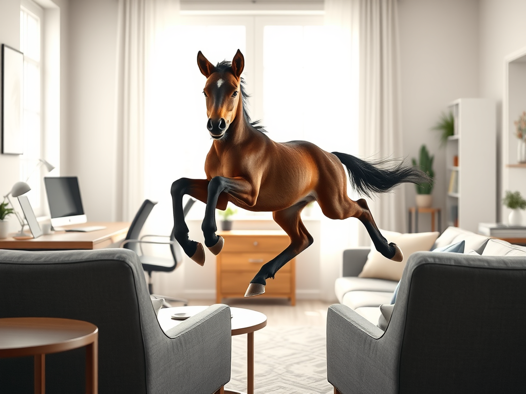 A young colt frolicked around a room inside a house while I sat and watched. I say a “young” colt because a colt is a horse under four years old, and this one was probably closer to a year. He was dark brown–a bay–and incredibly agile. I consciously noted his agility and wished I had some of it. He jumped up onto tables and chairs, knocking about the room, though not hurting anything. Unlike me, he was uncannily graceful.